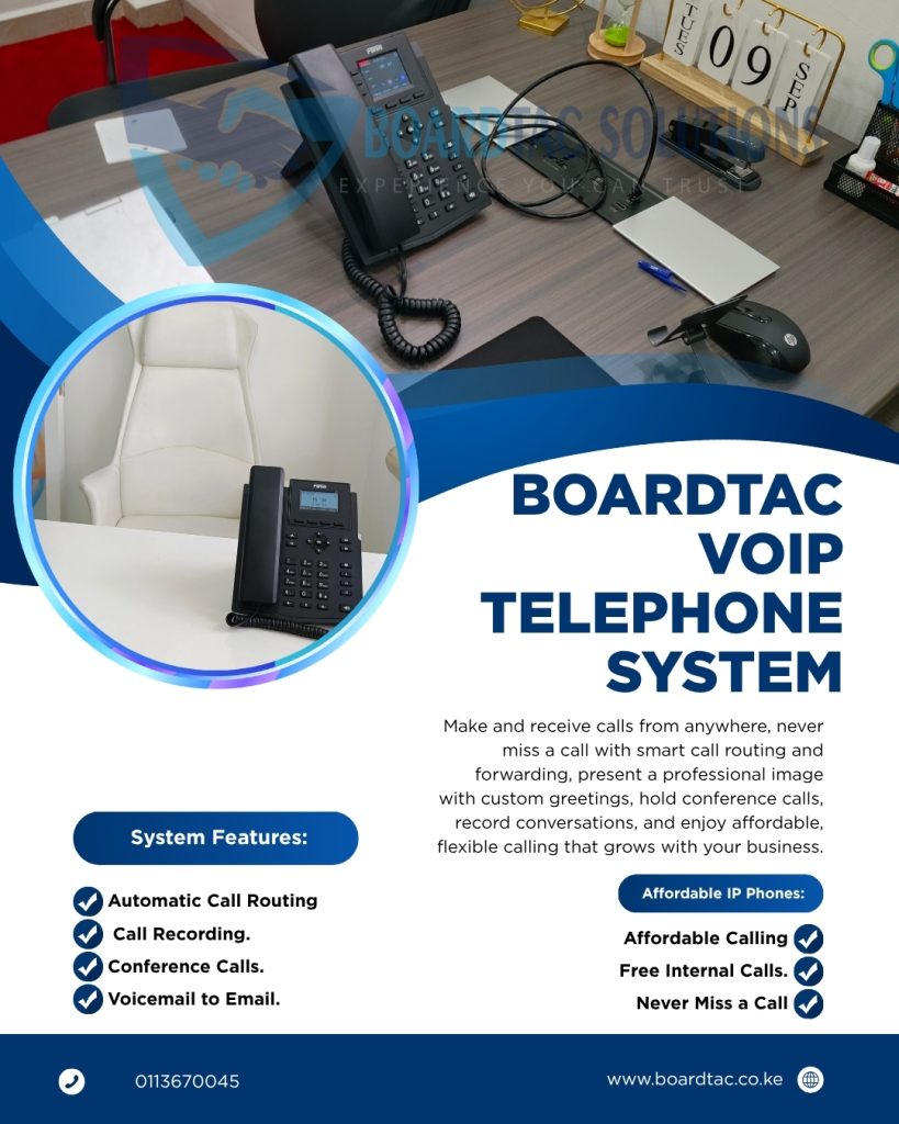 Security is just one part of what we do. We also offer comprehensive IT systems installation and support across Nairobi and beyond. From office network setups and school attendance systems to IP telephony and biometric employee time tracking with software integration, we help businesses run more efficiently. Our services extend to video conference installations, IT support, printer maintenance, and laptop and desktop repairs—so you have one reliable team to turn to for both security and technology needs.