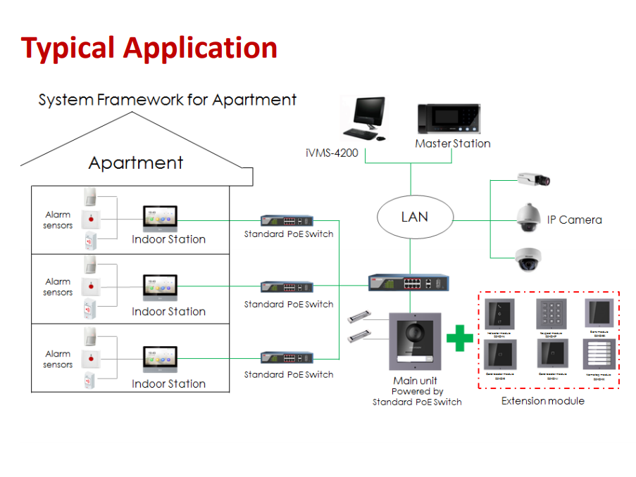 Wide Apartment Coverage – Supports up to 16 indoor extensions, 17 doorphones, and 16 network cameras.