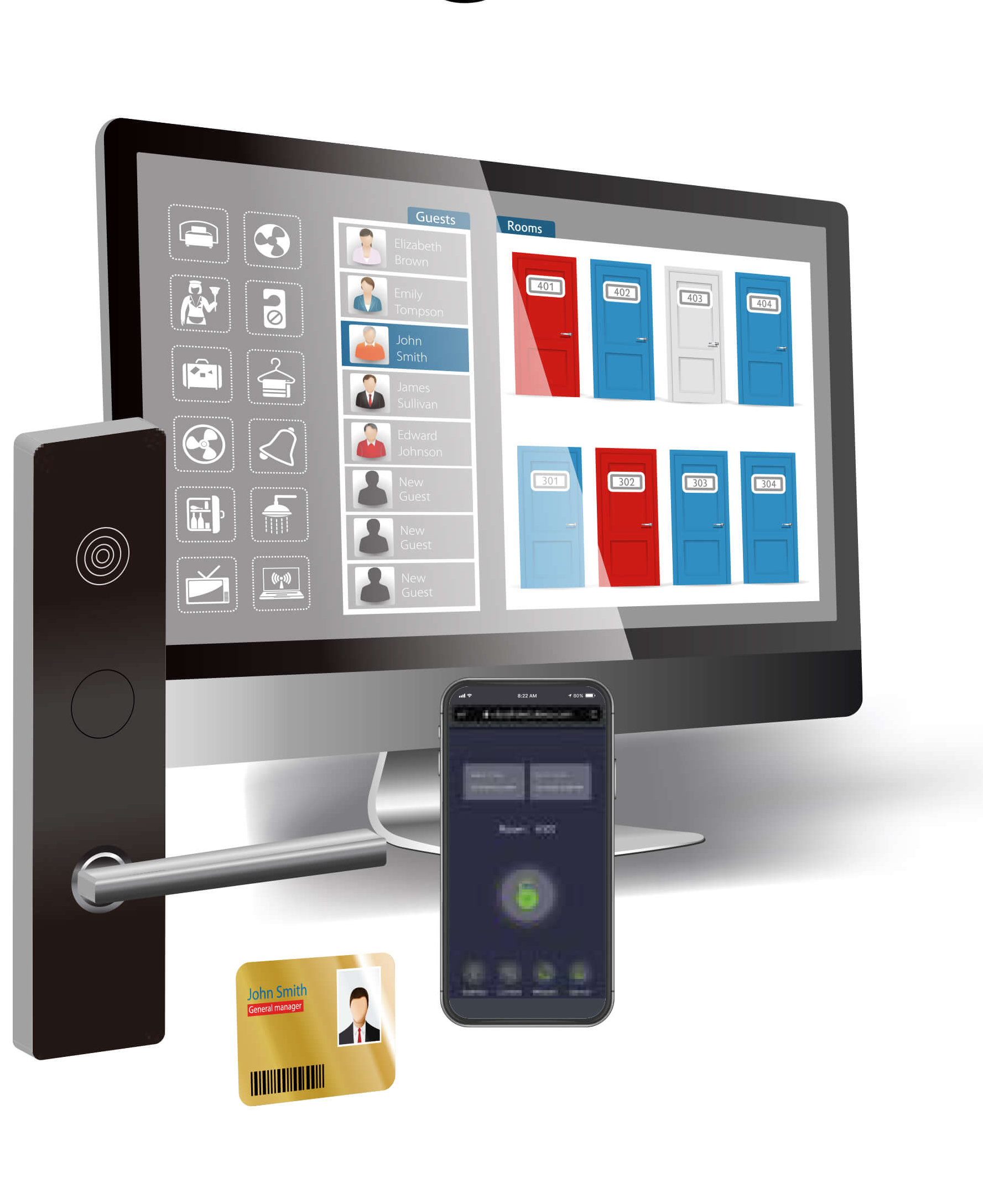 Staff can remotely monitor all locks, control elevator access, and check room access records in real time.